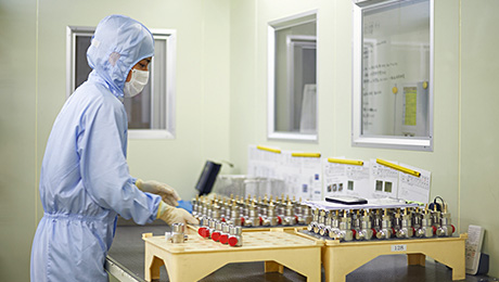 半導体材料ガス用バルブ製造のための、専用クリーンルームを設置。組立時に混入するパーティクルの極小化を可能にしています。