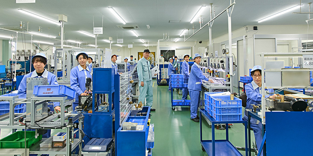 ハマイでは、高圧バルブの生産工場として府中工場(東京都)、LPガスバルブ及びボールバルブの生産工場として大多喜工場(千葉県)を開設。クリーンルームや超高圧150MPaの昇圧機を導入、また、大量生産を実現する自動生産ラインや多品種少量に対応するセル生産ラインを構築することで、あらゆる供給ニーズにお応えいたします。